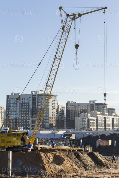 Россия. Санкт-Петербург. Новостройки. Строительство недвижимости. Строительная техника и подъемные краныРоссия. Санкт-Петербург. Новые здания. Строительство недвижимости. Строительное оборудование и краны