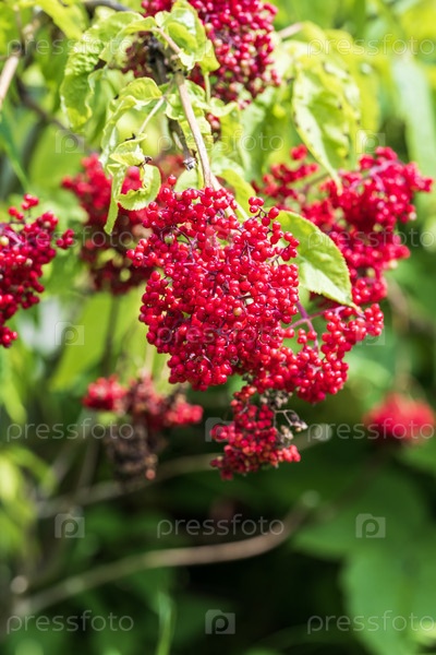 Ягоды красной бузины на ветке