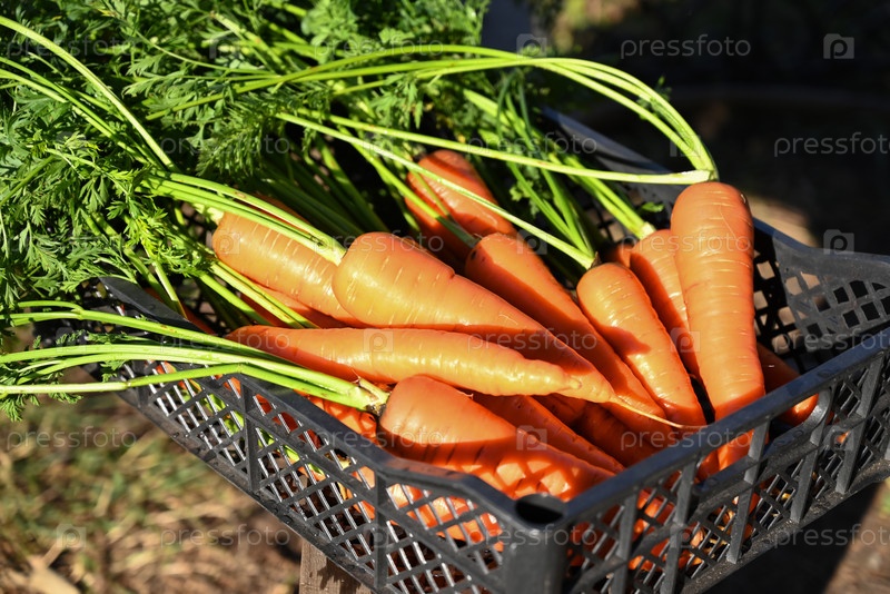 Корзина со свежей морковью. Сбор урожая