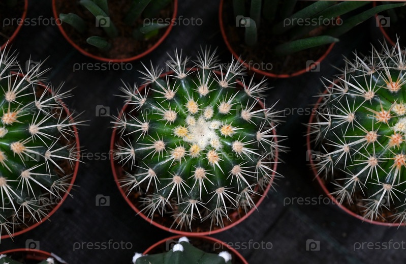 Различные виды кактусов крупным планом