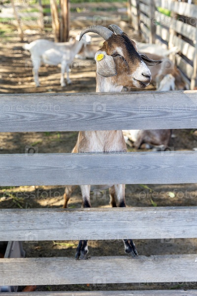 Россия. Санкт-Петербург. Загон с козами в фермерском хозяйстве. Россия. Санкт-Петербург. A pen with goats in a farm