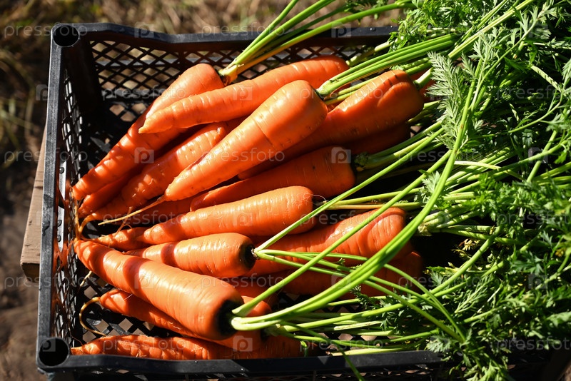 Корзина со свежей морковью. Сбор урожая