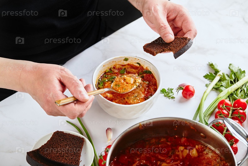 Украинский и русский традиционный борщ из красной свеклы, приготовленный из свеклы, капусты, картофеля, говядины и помидоров