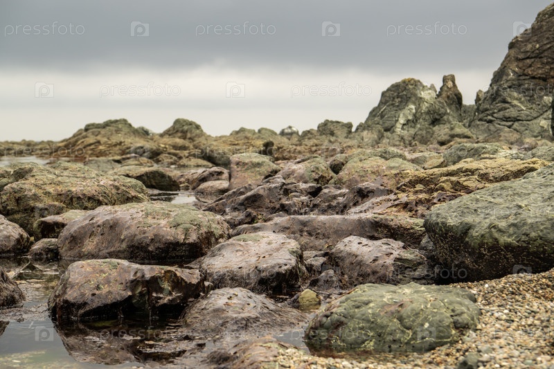 Каменистый пляж во время отлива