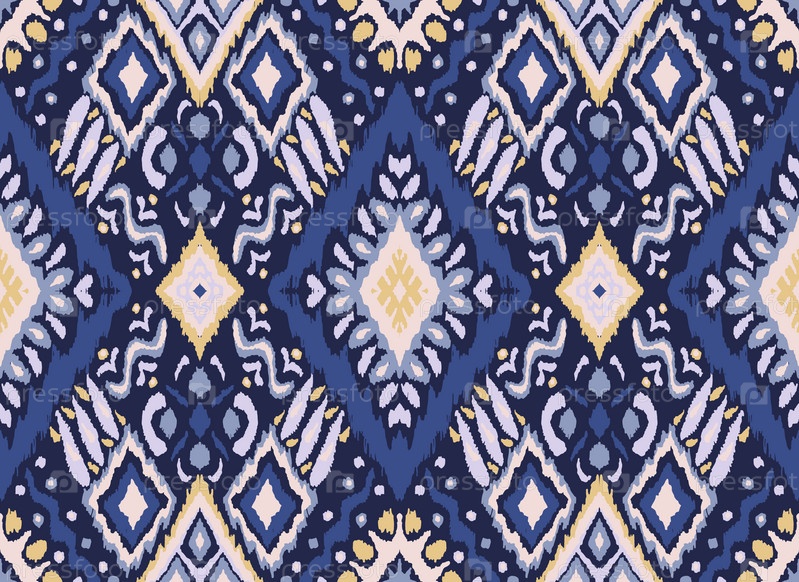 Икат геометрический фольклорный орнамент с бриллиантами. Племенная этническая векторная текстура. Бесшовный полосатый узор в стиле ацтеков. Народная вышивка. Индийский, скандинавский, цыганский, мексиканский, африканский ковер