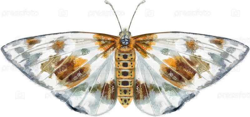 Белая вязовая моль. Вид сверху. Акварельная иллюстрация