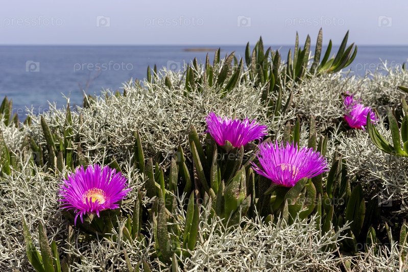Суккулентное растение (Carpobrotus acinaciformis) в крупном плане