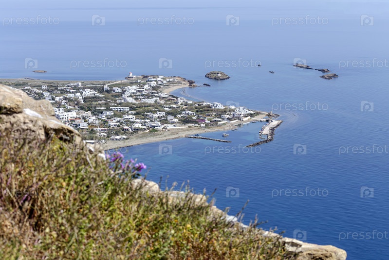Вид на курортный город Хора и море (Северные Спорады, остров Скирос, Греция)