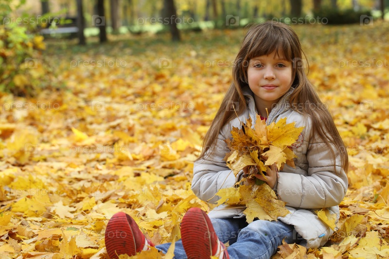 Девочка с кленовыми листьями