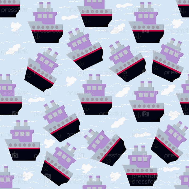 Схема корабля. модель судна. моторный корабль бесшовный шаблон. текстура для дизайна. иллюстрация