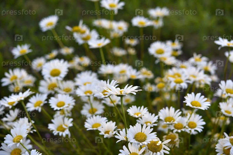 Ромашковое поле. Красивые белые цветки ромашки. Матрикария рекутита