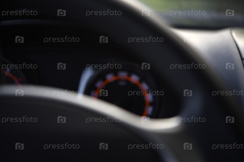 Рулевое колесо и спидометр в машине. Приборная панель автомобиля