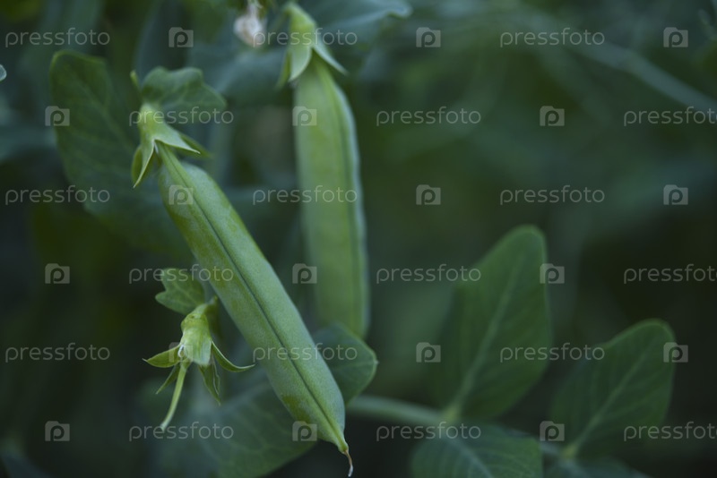 Спелые стручки гороха в саду. Сочные плоды гороха. Писум посевной
