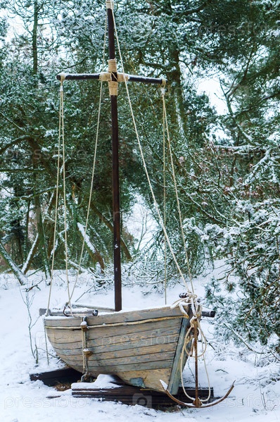 Арт-объект рыбацкая лодка. Скульптура рыбацкой лодки в лесу