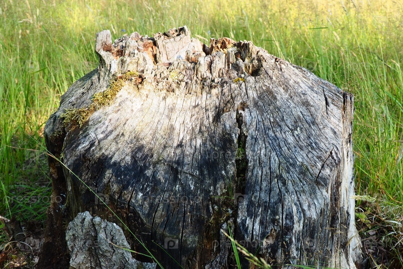 Дерево, обглоданное бобром. Поврежденная кора и древесина. Работа бобра на строительстве плотины. Таежный биом. Упавшее большое дерево. Жизнедеятельность леса. Европейские животные