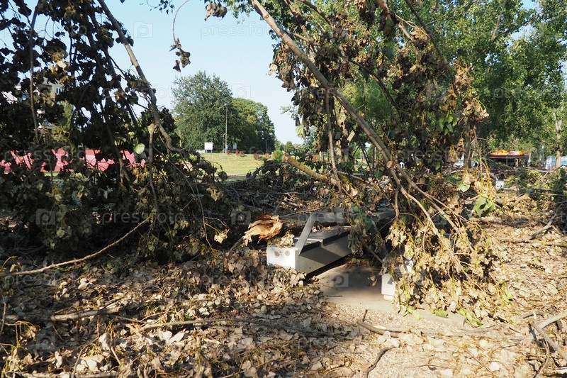 Последствия урагана 07. 19.23 Сремска-Митровица, Сербия. Сломанные тополя, бардак на улицах. Сломанные ветки, погнутые стволы. Чипсы и мусор. Чрезвычайное положение после катастрофического шторма