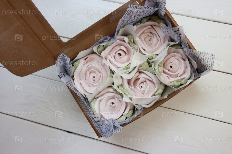 Домашний зефир в бумажной подарочной упаковке. Зефир цветы. Коробка открыта