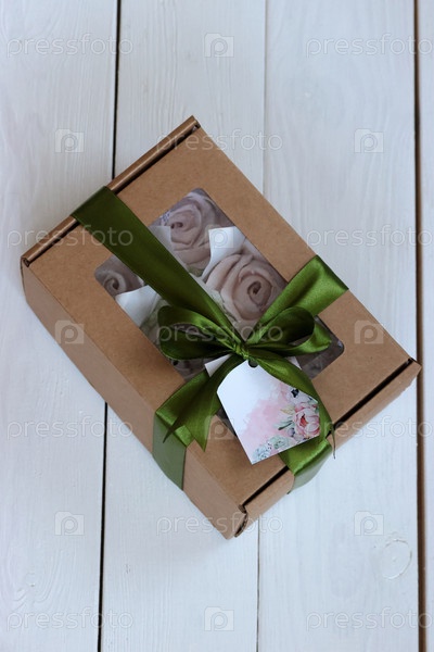 Домашний зефир в бумажной подарочной упаковке. Зефир цветы. Коробка перевязана лентой, завязанной на бантик