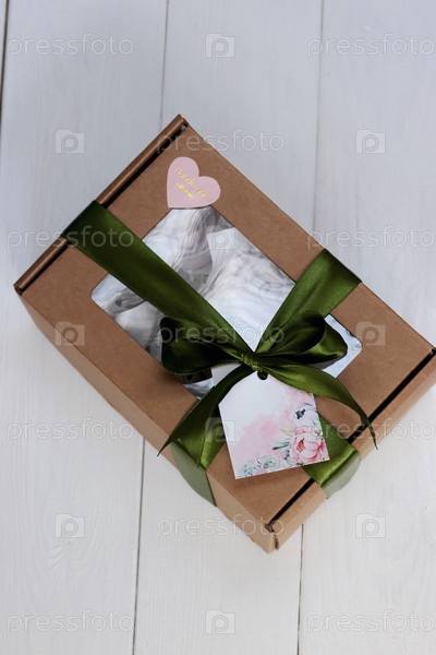 Домашний зефир в бумажной подарочной упаковке. Зефир цветы. Коробка перевязана лентой, завязанной на бантик