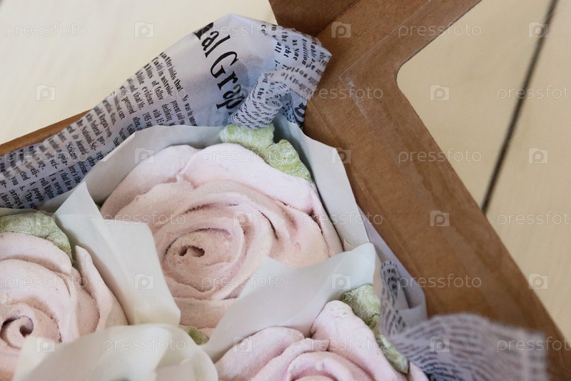 Домашний зефир в бумажной подарочной упаковке. Зефир цветы. Крупный план