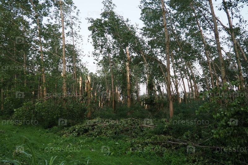 Последствия урагана 19 июля 2023 г. Сремска-Митровица, Сербия. Сломанные деревья, бардак на улицах. Сломанные ветки, погнутые стволы. Чипсы и мусор. Чрезвычайное положение после катастрофического шторма