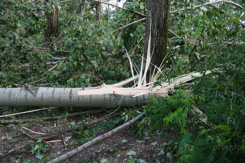 Последствия урагана 19 июля 2023 года, парк Сремска-Митровица, Сербия. Сломанные деревья, бардак на улицах. Сломанные ветки, погнутые стволы. Чипсы и мусор. Чрезвычайное положение после катастрофического шторма