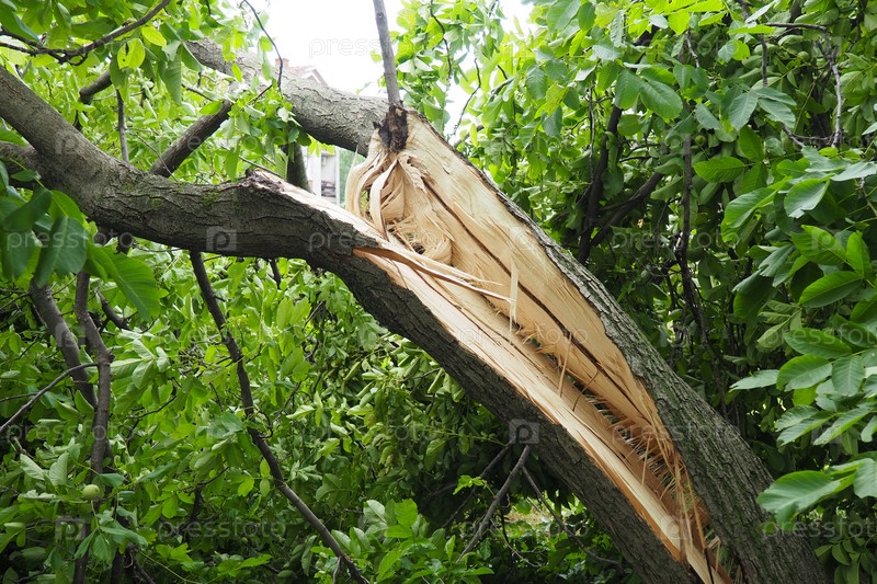 Последствия урагана 19 июля 2023 года, парк Сремска-Митровица, Сербия. Сломанные деревья, расколотый орех. Сломанные ветки, погнутые стволы. Чипсы и мусор. Чрезвычайное положение после катастрофического шторма