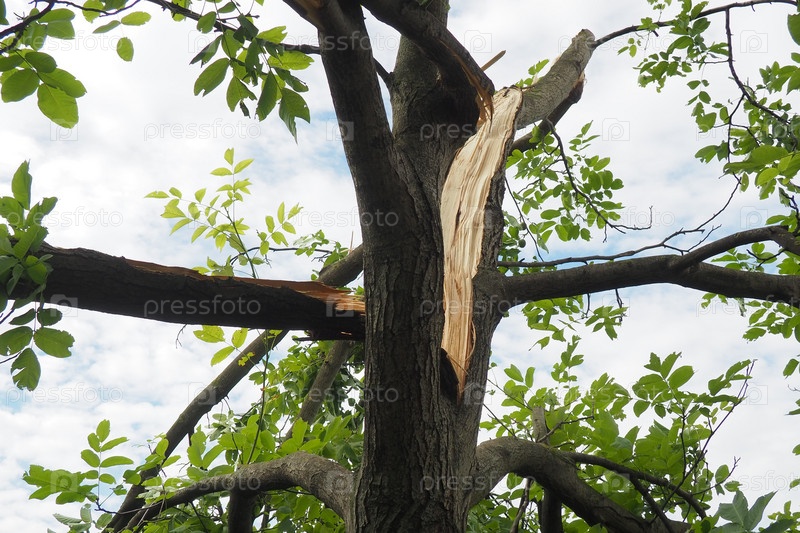 Последствия урагана 19 июля 2023 года, парк Сремска-Митровица, Сербия. Сломанные деревья, расколотый орех. Сломанные ветки, погнутые стволы. Чипсы и мусор. Чрезвычайное положение после катастрофического шторма