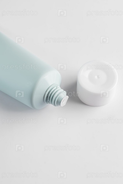 Зеленая косметическая трубка для крема для лица или тела, моющего средства или шампуня на белом фоне. Концепция минимализма в косметической упаковке. Копировать пространство