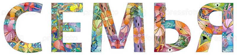 Художественный дизайн ручной росписи. Ручной рисунок слова СЕМЬЯ для футболки и других украшений