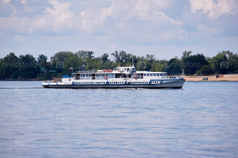 Пассажирский корабль плывет по реке