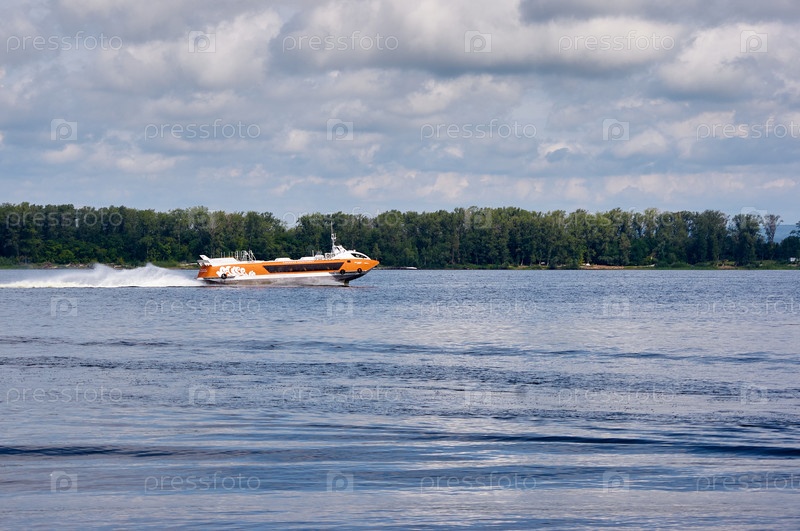 Катер "метеор" плывет по реке