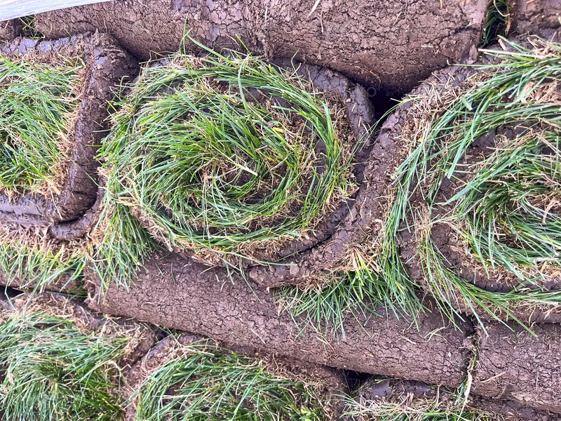 Укладка рулонного газона, благоустройство заднего двора, крупный план газона