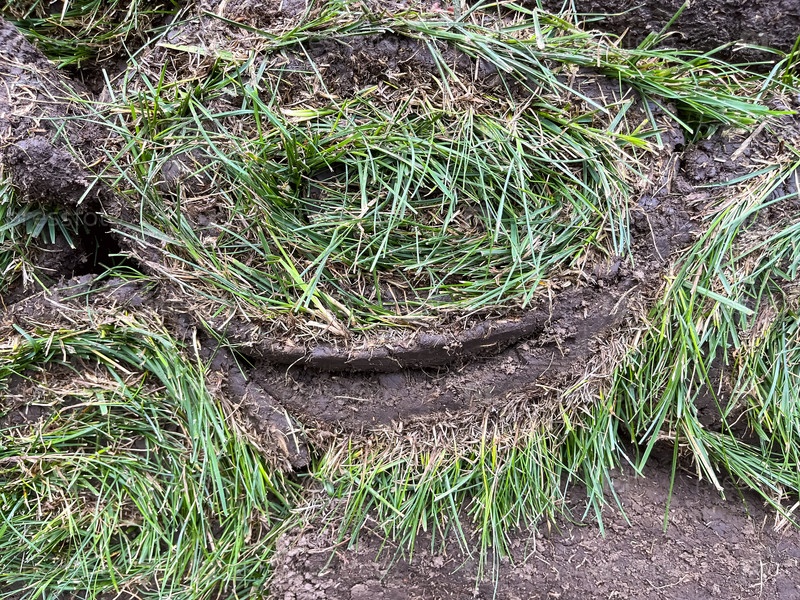 Укладка рулонного газона, благоустройство заднего двора, крупный план газона