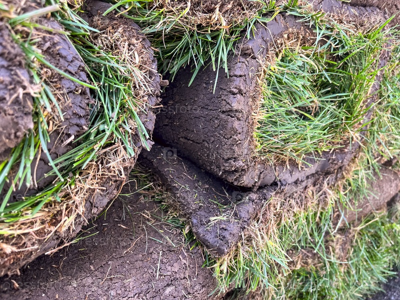 Укладка рулонного газона, благоустройство заднего двора, крупный план газона