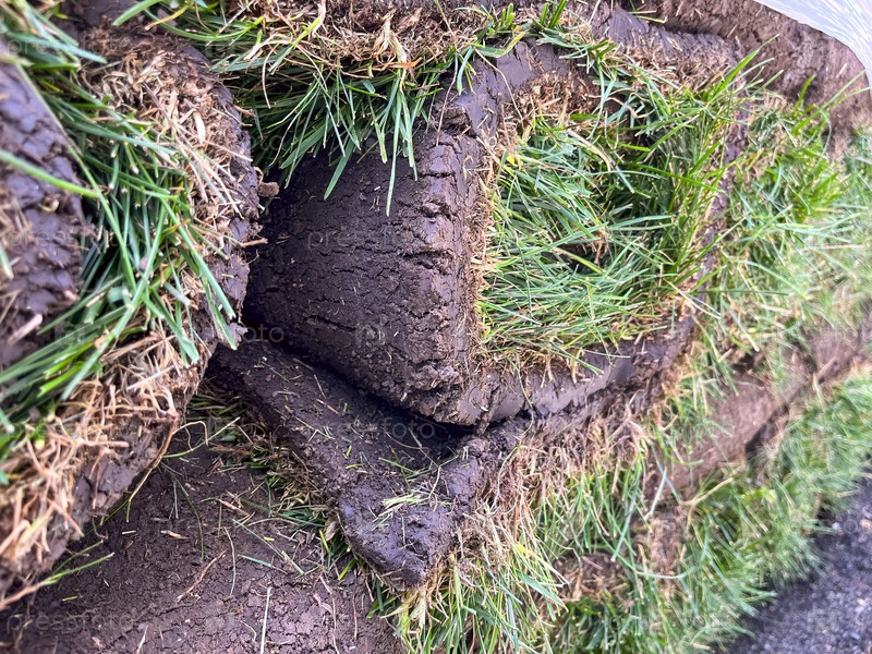 Укладка рулонного газона, благоустройство заднего двора, крупный план газона