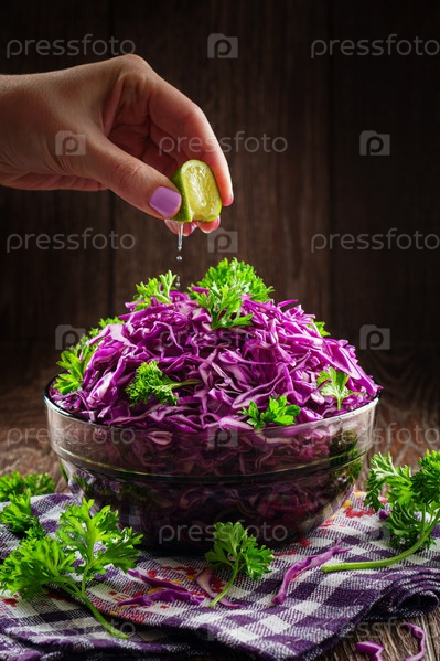 Салат из капусты с красной капустой, петрушкой и соком лайма