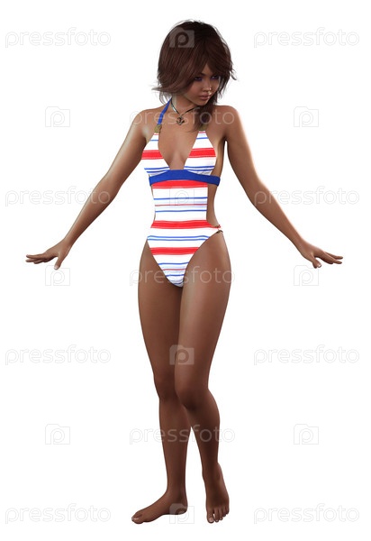 3D афроамериканка в полосатом купальнике