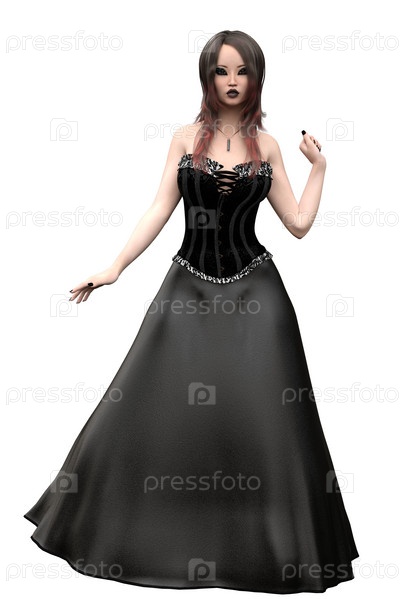 3D азиатская готическая девушка в черном платье