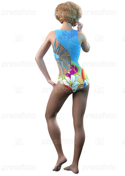 3D Девушка в синем монокини