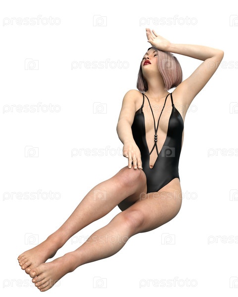 3D Женщина в черном монокини