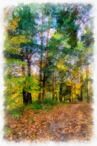 Осенняя лесная дорога цифровая живопись