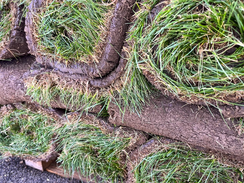Укладка рулонного газона, благоустройство заднего двора, крупный план газона
