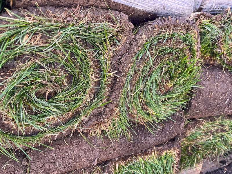Укладка рулонного газона, благоустройство заднего двора, крупный план газона