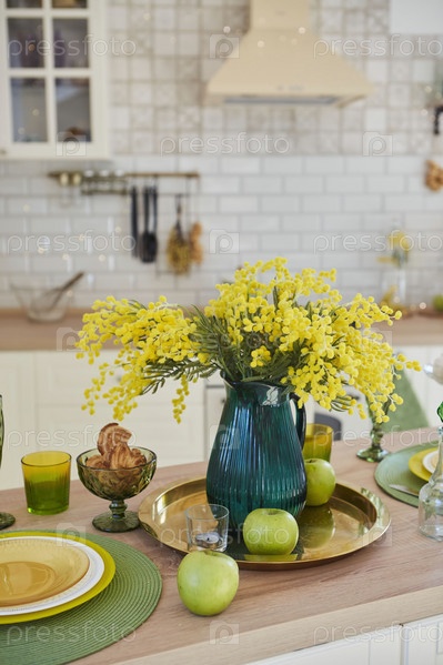 Блюда, фрукты и десерты на кухне. Дизайн интерьера