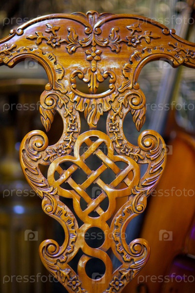 Резная деревянная спинка стула из ценных пород дерева. Ручная работа, антиквариат