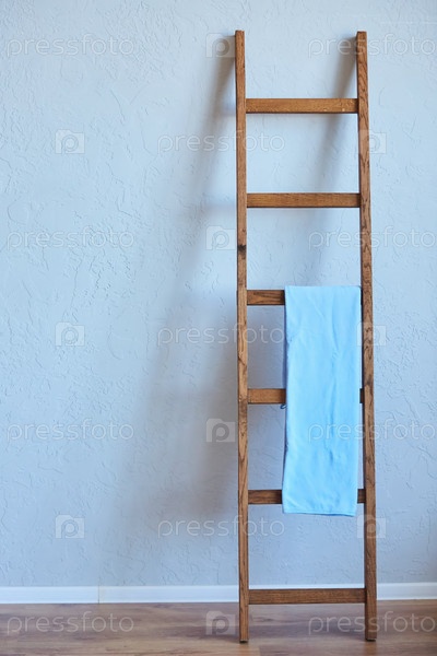 Деревянная лестница - палка для подвешивания банных полотенец. Дизайн интерьера ванной комнаты