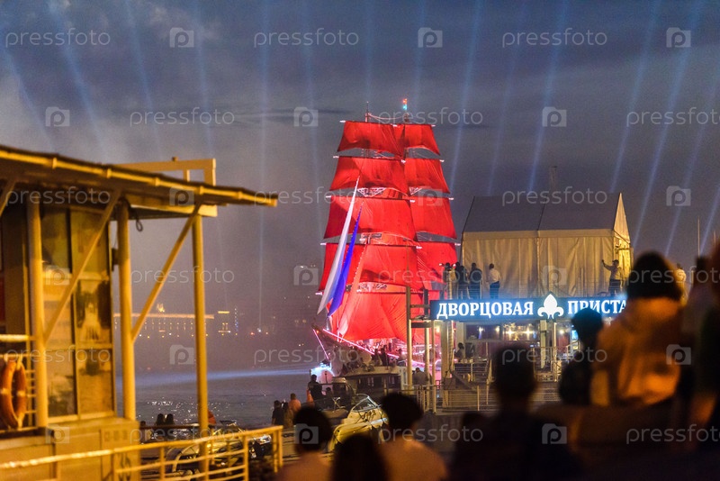 Россия, Санкт-Петербург, июнь 2021 г.: Ночной вид на Дворцовый мост. Алые паруса
