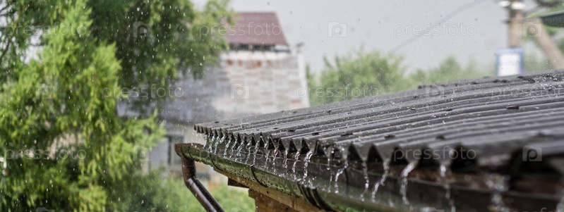 Дождь стекает с крыши вниз
