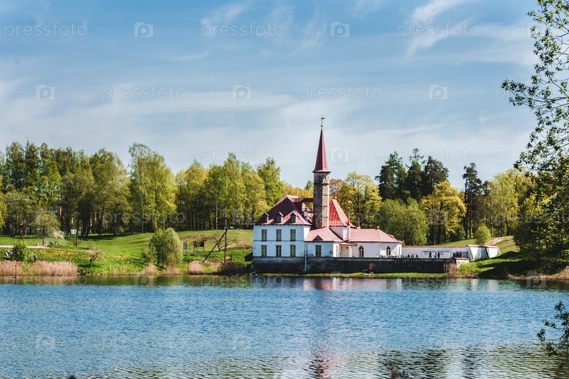 Приоратский замок в Гатчине вид с озера. Россия, Гатчина